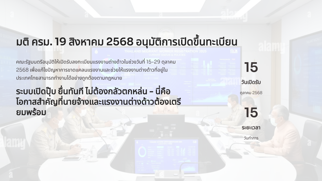 หมายเหตุ: แรงงานสัญชาติกัมพูชาต้องรายงานตัวกับสำนักงานตรวจคนเข้าเมืองทุก 60 วัน
